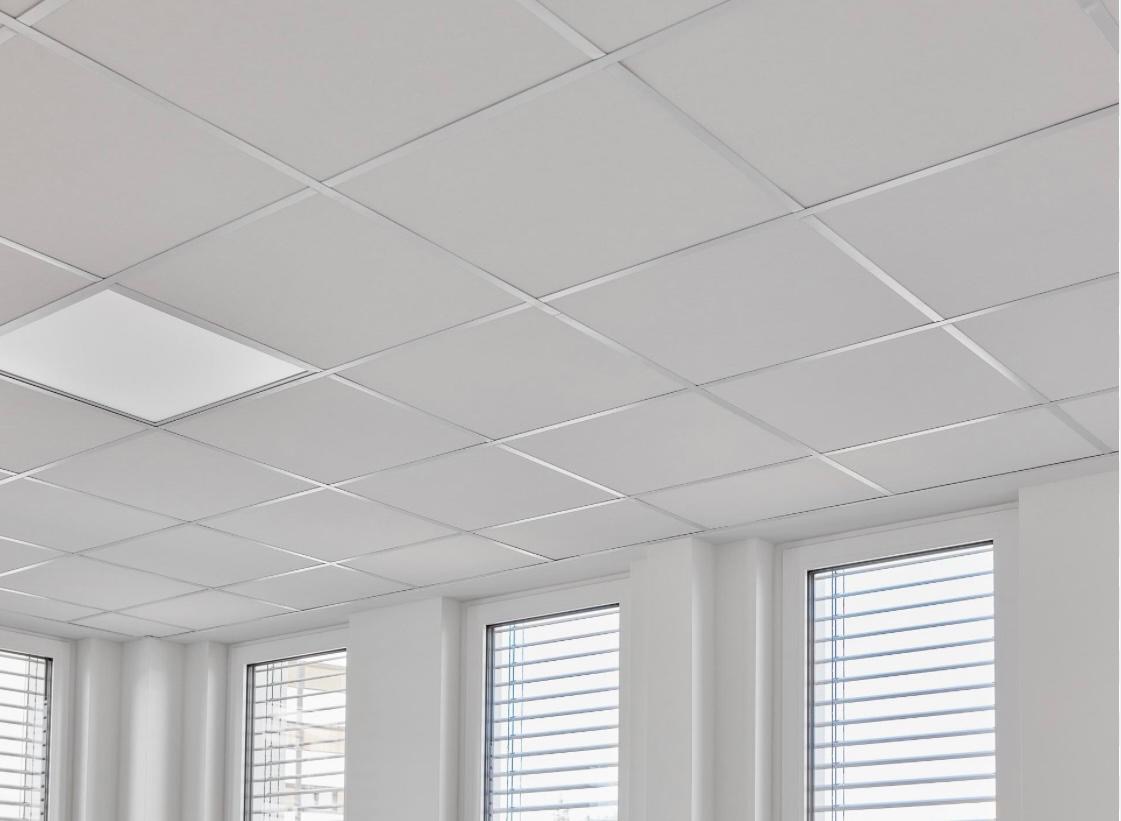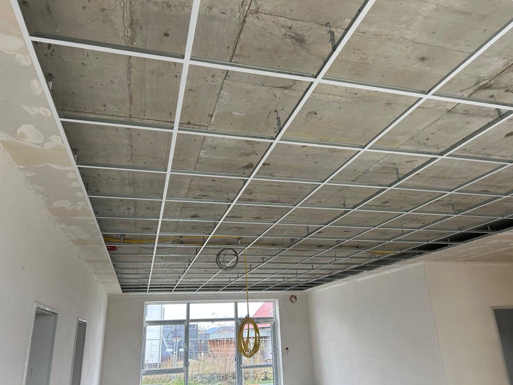 - Stabiler Metallrahmen als Tragsystem für abgehängte Decke.